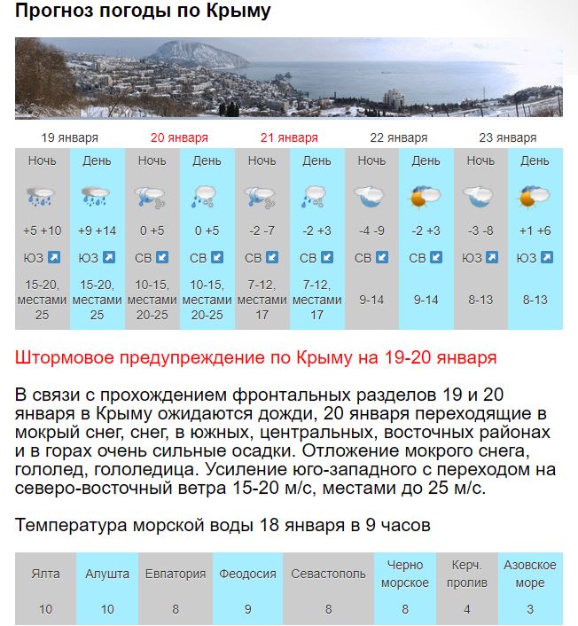 В Крыму и Севастополе вместо крещенских морозов прогнозируют дожди