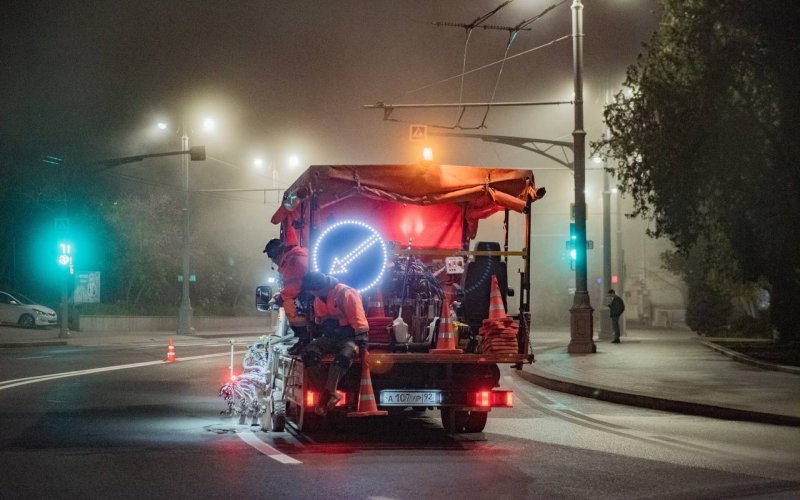 Работы ведут ночью, чтобы не мешать проезду машин и общественного транспорта. Сначала разметку обновили на периферии, теперь перешли в центр. Специалисты применяют эмаль, чтобы разметка была видна в том числе и в ночное время, отображаясь от фар машин. Закончить работы должны до 1 июня.