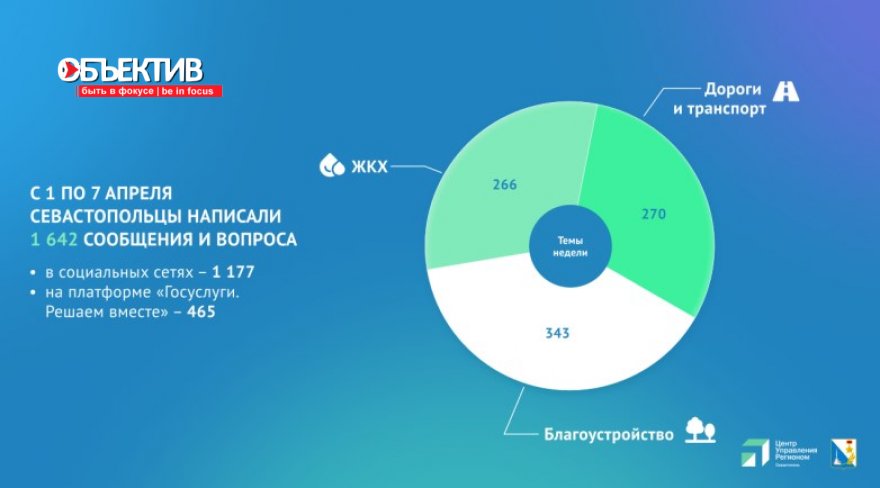 Более 1600 комментариев оставили севастопольцы в социальных сетях и на платформе «Госуслуги. Решаем вместе» за период с 1 по 7 апреля, сообщает пресс-служба городского правительства.