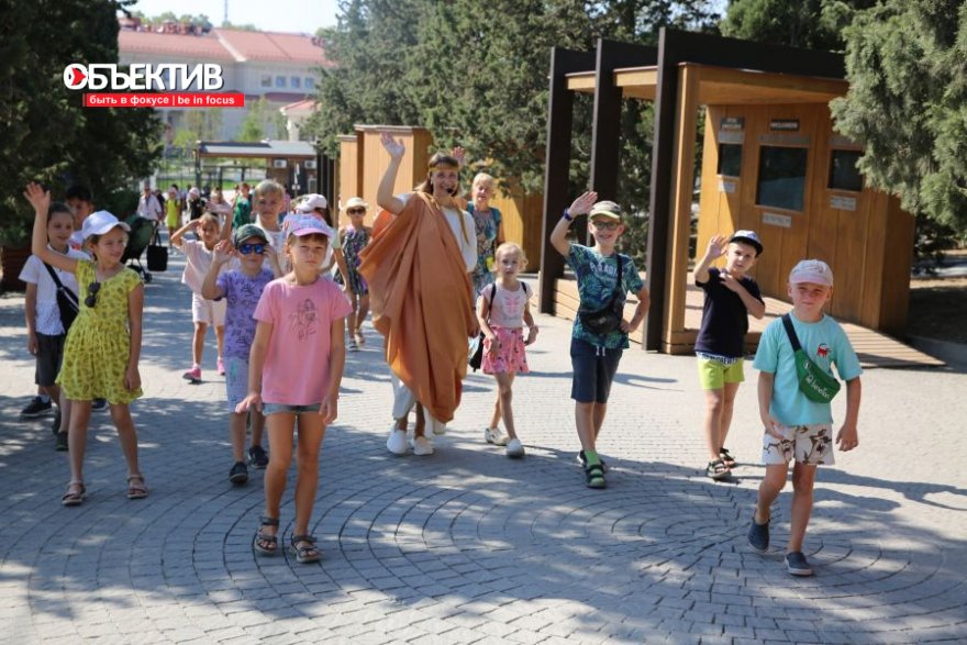 Сначала ребята погрузились в новую интерактивную экскурсию «Возвращение в Херсонес», разработанную по мотивам одноименной детской книги. В конце экскурсии главный герой повести, древнегреческий мальчик, присоединился к школьникам. Все вместе они изучили памятники древнего города и отгадали множество загадок.