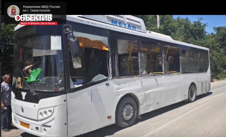 Грузовик Mercedes Benz врезался в автобус с пассажирами в Севастополе (видео)