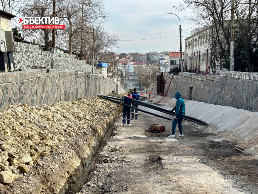 На улице Адмирала Октябрьского в Севастополе на сегодняшний день полностью уложены водопропускные трубы, а также продолжается укладка сетей связи. Об этом сообщили в городском правительстве.