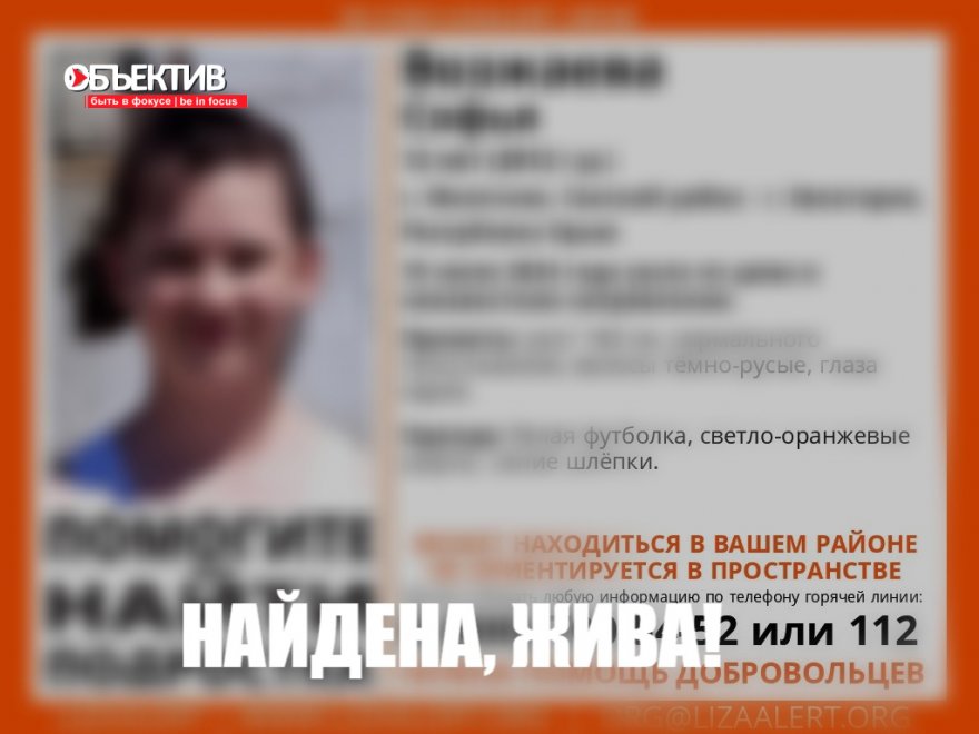 В Крыму найдена живой 12-летняя Софья Возжаева. Об этом сообщают волонтеры поисково-спасательного отряда «Лиза Алерт».