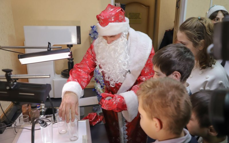 Первыми поздравили детей эксперты-криминалисты. Одиннадцать воспитанников городского Социального приюта для детей и подростков посетили Экспертно-криминалистический центр УМВД России по г. Севастополю, где их встретили Дед Мороз и Снегурочка, а в фойе стояла украшенная новогодняя ёлка.